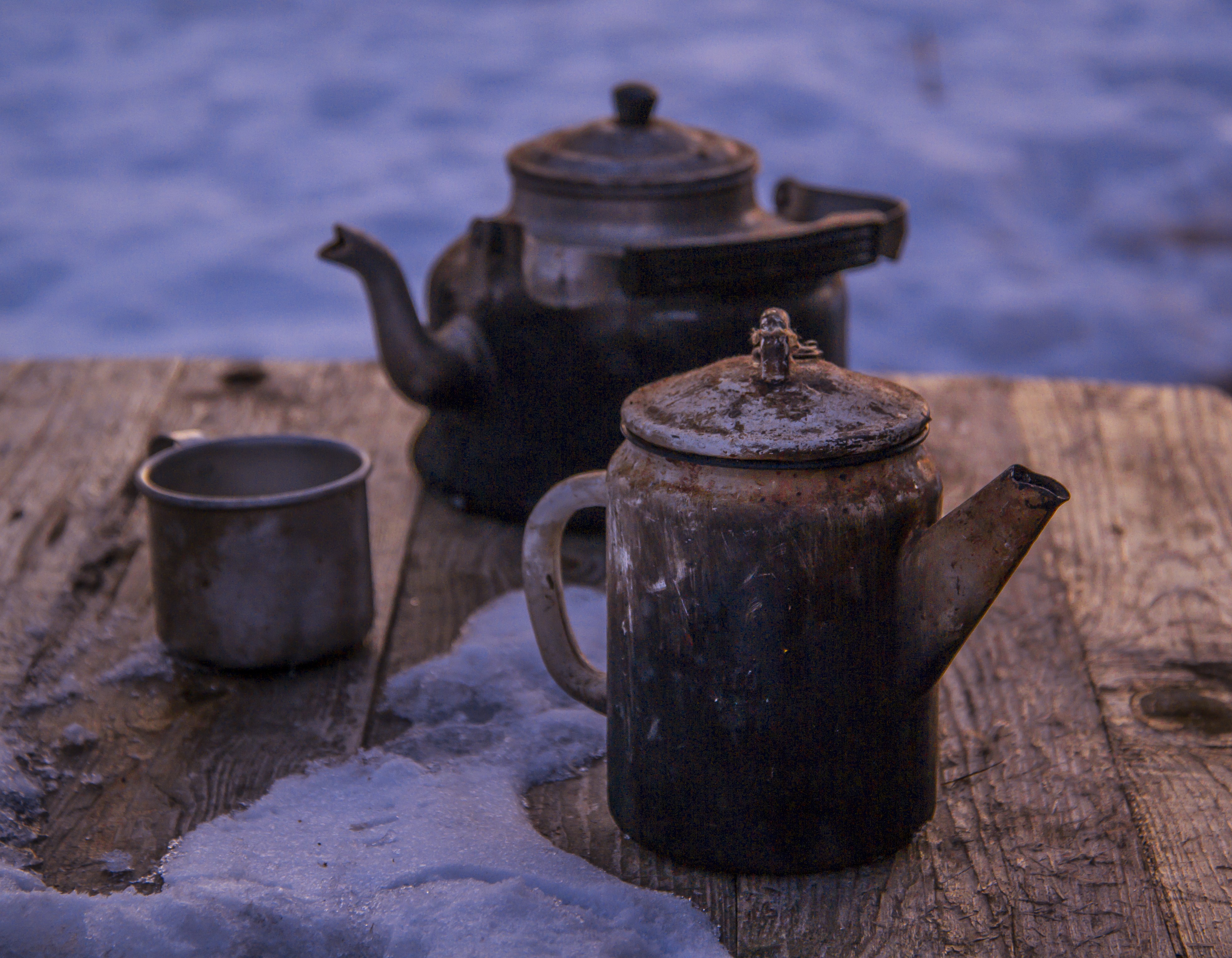 Вскипятили чайник, съели по картошке. Остальную высыпали птицам. И черемшу тоже. И воду.
