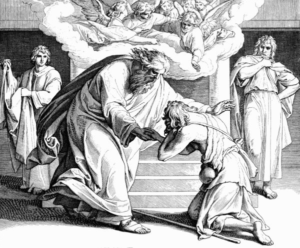 И вот, увидев по прошествии времени возвращающегося сына, – голодного, оборванного и несчастного — «когда он был еще далеко, увидел его отец его и сжалился; и, побежав, пал ему на шею и целовал его».