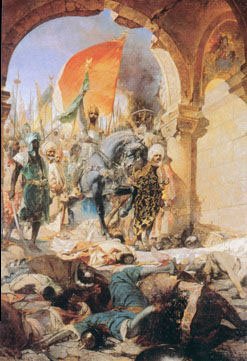 В 1451 году султанский престол занял Мехмед II Завоеватель — правитель способный, прекрасный военачальник, хитрый политик, монарх, любящий науки и искусство, но крайне жестокий и совершенно аморальный. Он сразу же начал готовиться к взятию Града святого Константина. Высадившись на европейском берегу Босфора, который еще принадлежал империи, он начал уничтожать греческие деревни, захватывать немногие остававшиеся у греков города и возводить у устья Босфора крепость, оснащенную мощными пушками. Выход в Черное море был заперт. Подвоз хлеба в Константинополь можно было остановить в любой момент. Особое значение завоеватель придавал флоту. Для осады Города было приготовлено более ста боевых кораблей. Сухопутная армия султана составляла не менее 100 тысяч. Греки утверждали даже, что там было до 400 тысяч воинов. Ударной силой турецкой армии были янычарские полки. (Янычары — сыновья христианских родителей, которых в младенчестве забирали из семей и воспитывали в духе исламского фанатизма).