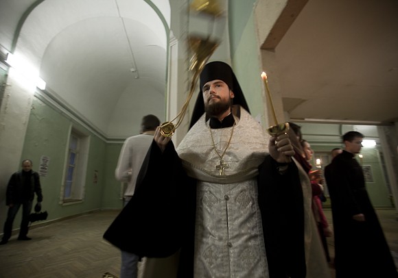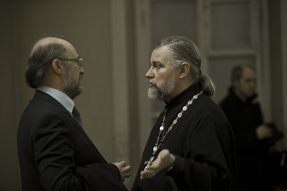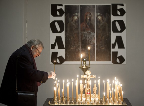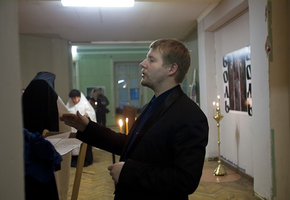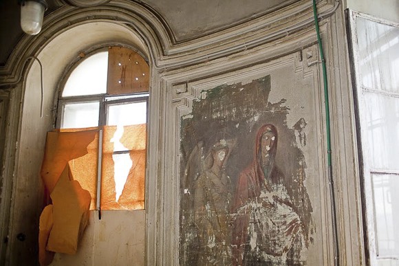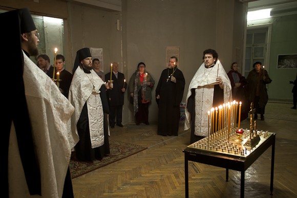 Сразу после богослужения в Иоанно-Богословском храме состоялось открытие фотовыставки «БОЛЬ. Незалеченные раны храма апостола Иоанна Богослова». Перед глазами посетителей впервые предстали фрески — элементы сохранившейся купольной росписи верхнего храма, вплоть до настоящего времени находившиеся «под спудом» — спрятанные от всеобщего обозрения межэтажными перекрытиями, сооруженными в оскверненной церкви в ранние советские годы. Подробнее — в фоторепортаже Евгения Глобенко.