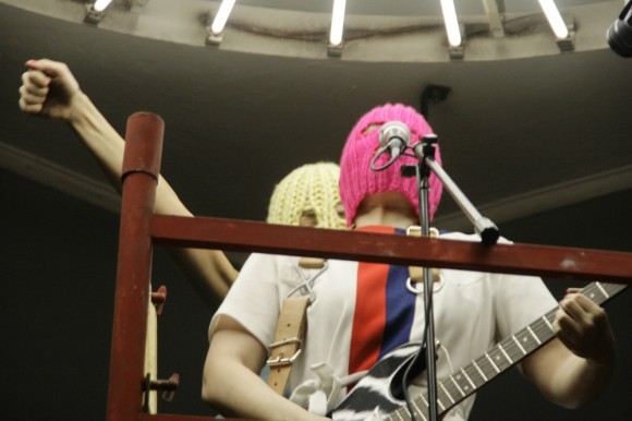 21 февраля на солею храма Христа Спасителя выскочили четыре молодые женщины в цветных чулках на головах и попытались спеть песню политического и антиклерикального содержания. Ранее группа уже выступала с оппозиционными номерами, а за попытку выступления на Лобном месте на Красной площади в Москве участницы были оштрафованы на 500 рублей.