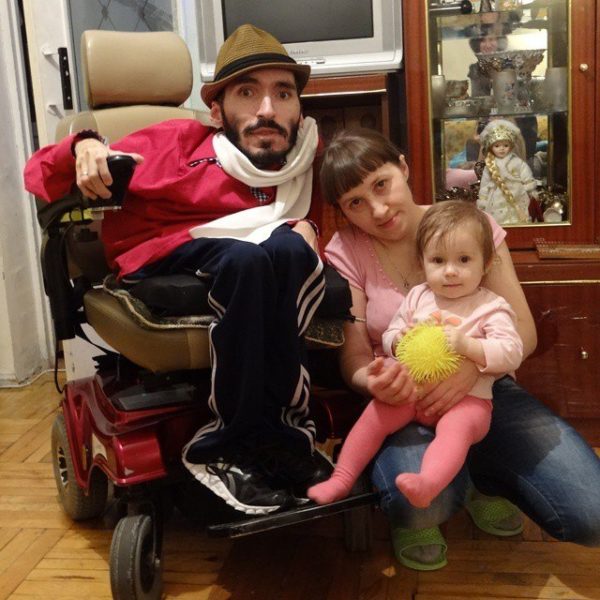 – Как ни странно, в моем окружении очень много красивых девушек, хотя посмотрите на меня – мое тело жутко деформировано, мышцы атрофированы, сил хватает лишь держать карандаш и кисть в руке. Но, что самое важное, я женат на чудесной девушке Елене, которая не только подарила мне свою любовь, но и лучшую на свете дочь!