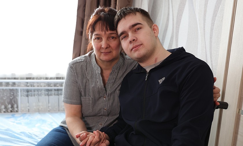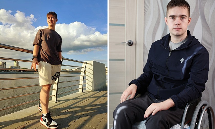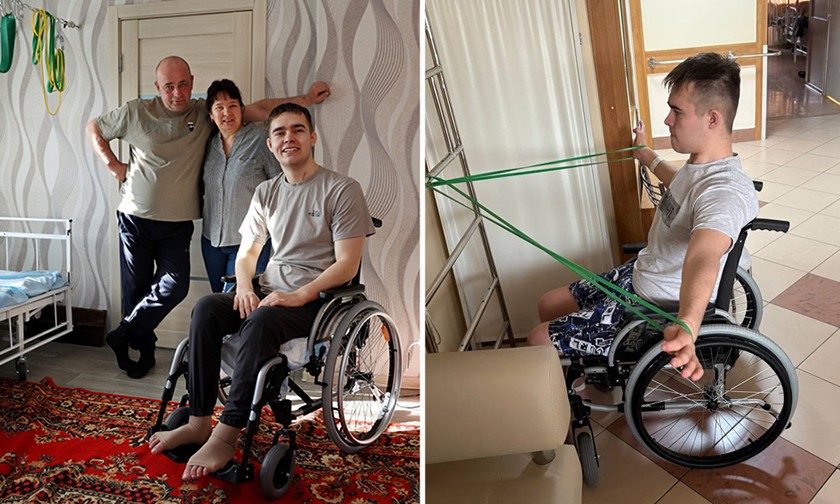 — Кирилл почти весь день проводит в коляске, — рассказывает мама. — У него есть чувствительность в ногах, но будто местами — чувствует щекотку, боль. Пальцы на левой и правой руках у него не сжимаются в кулак, он не может взяться, например, за ходунки или застегнуть памперс. Но он сам чистит зубы, моется. Это уже огромный прогресс.