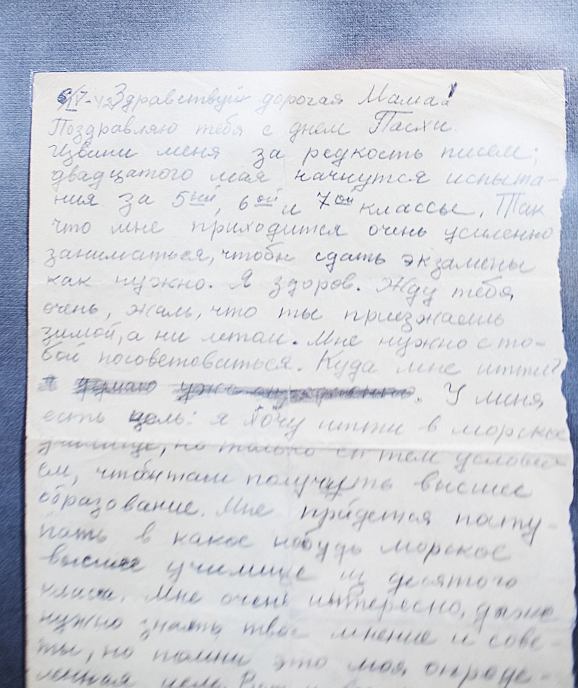 И теперь единственная возможность, которая у них есть — пытаться от письма к письму влиять на интеллектуальный уровень своих детей. Мы не касаемся здесь взаимоотношений с государством, не приводим бесконечные заявления с просьбой о пересмотре, еще о чем-то. Мы не касаемся здесь писем матерям, женам, сестрам. Мы поднимаем только тему папиных писем.