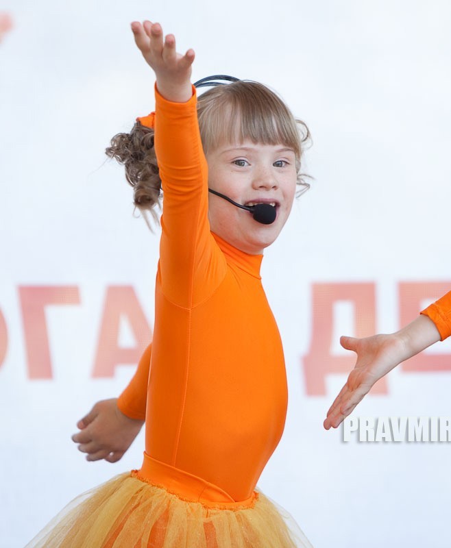 Выступление ансамбля ДОМИСОЛЬКА. Одна из участниц ансамбля — девочка с синдромом Дауна
