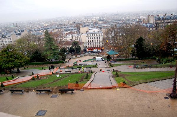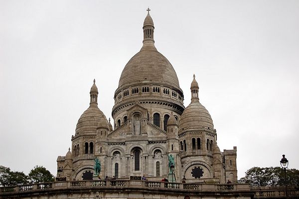 С террасы Сакре Кёр весь Париж как на ладони. Спрашивается, зачем еще лезть на башни и прочие возвышенности? Здесь очень любят (любили?) Богоматерь. Храмы с именем Нотр Дам повсюду. Возле нас недалеко «Нотр-Дам в полях» (де шамп). Очень часто видим в их храмах православные иконы, особенно – Владимирскую. Она нежная и скорбная, тогда как самая лучшая скульптура тяжеловесна. Покровители Парижа православны вполне. Это Сен Дени и Женевьева, прописанные в нашем сознании как Дионисий и Геновефа.