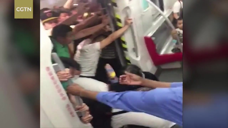Пассажиры китайского метро наклонили вагон, чтобы спасти женщину (видео)