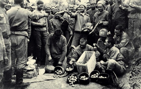 Работа закипела, а я побежал в свою фанзу: надо ведь устраивать и у себя пасхальный стол для всех нас. Стол, довольно длинный, мы раздобыли; скатертью обычно служат у нас газеты, но нельзя же так оставить и на Пасху: я достал чистую свою простыню и постлал ее на стол. Затем в средине положил черный хлеб, присланный нам из 6-го эскадрона, прилепил к нему восковую свечу — это наша пасха. Рядом положил десять красных яиц, копченую колбасу, немного ветчины» которую мы сберегли про черный день еще от Мукдена, да поставил бутылку красного вина. Получился такой пасхальный стол, что мои сожители нашли его роскошным.