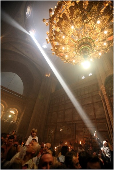 “Да воскреснет Бог, и расточатся врази Его”,– поет Патриарх. “Христос анести”,– поют греки. Гроб превратился в рай, место Страстей – в источник радости. Все мы держим в руках свечи, но наши души светлее свечей.