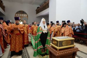 «Единственная причина, почему Елисавета Феодоровна осталась в России, а не уехала за рубеж, где бы жила благополучно вместе с родственниками, — это то, что она не могла оставить страну, которая стала для нее второй Родиной, Церковь, которой она служила верой и правдой, учредив Марфо-Мариинскую обитель и научив очень многих русских людей соединять свою православную веру с реальным доброделанием. Покинуть Россию было выше ее сил, и в этом не было никакой политики — только сильное религиозное чувство и любовь к стране, ставшей для нее действительно второй Родиной», — отметил в своей проповеди к собравшимся Глава РПЦ.