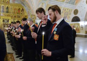 В Преображенской церкви кафедрального соборного Храма Христа Глава Русской Церкви совершил молебен, на котором присутствовали олимпийцы. Патриарх Кирилл отметил, что «блестящая игра» российских хоккеистов совершенно заслуженно привела их к победе.