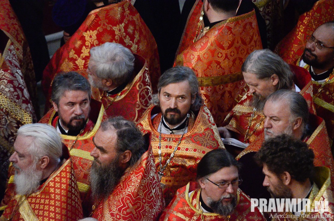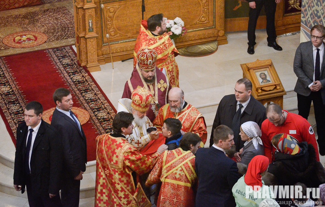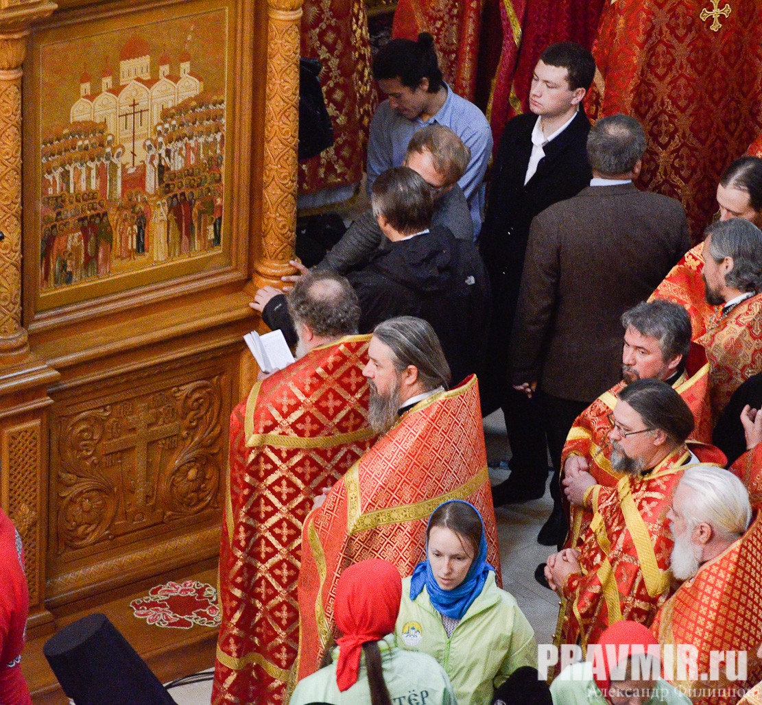 Его Святейшеству сослужили: митрополит Крутицкий и Коломенский Ювеналий, Патриарший наместник Московской епархии; протоиерей Кирилл Каледа, настоятель храма Новомучеников и исповедников Российских на Бутовском полигоне; протоиерей Владимир Воробьев, ректор Православного Свято-Тихоновского гуманитарного университета, протоиерей Александр Ильяшенко, председатель редакционного совета Интернет-портала «Православие и мир», духовенство Москвы и Московской области, сообщает Патриархия.ru