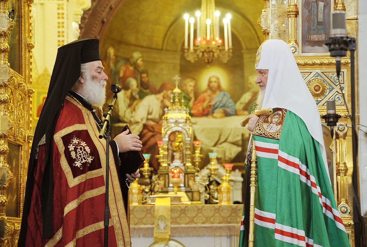 В слове приветствия Патриарху Александрийскому и всея Африки Феодору II Патриарх Кирилл выразил соболезнование в связи с трудным временем для христиан Африки.