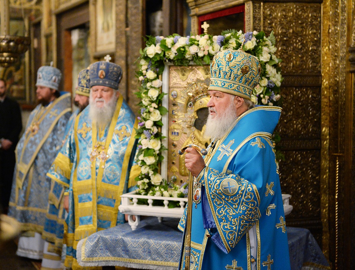И сегодня, в этот замечательный день, мы молились Божией Матери о том, чтобы Она никогда Свой Покров не отнимала от нашего Отечества, чтобы Она снисходила к нашим грехам, к помрачению нашего ума, к нашим неумным и часто злым словам; чтобы Своей материнской любовью Она ограждала нас от врагов видимых и невидимых, внешних и внутренних, сохраняя народ наш, всю историческую Русь в единстве, сохраняя веру православную в сердцах наших людей.