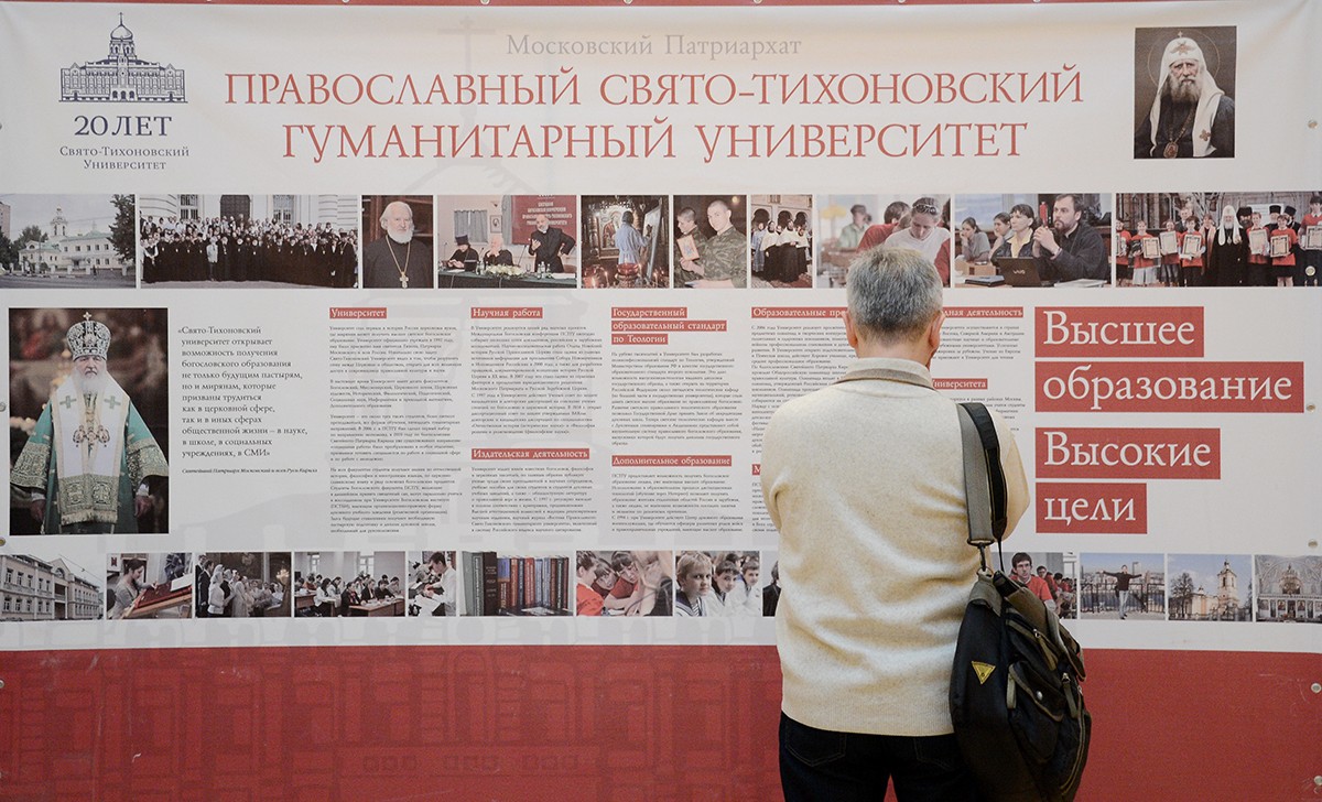 Перед началом мероприятия на галереях балконов Зала церковных соборов состоялось открытие выставки работ факультета церковных художеств ПСТГУ и выставки изданий и проектов учебного заведения, сообщает Патриархия.ru.