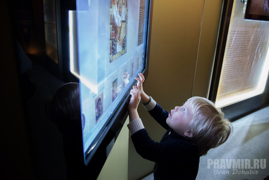Ещё одна особенность выставки – она обильно компьютеризирована. Именно поэтому маленькие дети, с детства привыкшие общаться с разными гаджетами, чувствуют себя здесь гораздо увереннее бабушек и дедушек.
