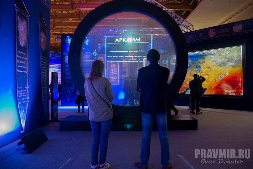 Одна из тенденций выставки – сделать повествование о далёкой истории интересным и актуальным для зрителя. Для этого давние события здесь нередко увязываются с современностью. Например, рассказ о торговых путях древних славян в одном из фильмов начинается с упоминания Северного морского пути и нынешних транснациональных шоссе.