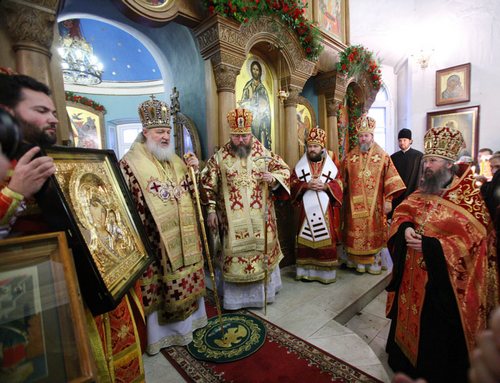 В память о сегодняшнем пребывании и праздновании 15-летия подворья я бы хотел преподнести этому святому храму икону Божией Матери «Казанская» с памятной надписью. Прошу всех тех, кто будет молиться перед этим образом и прикладываться к нему, вспоминать сегодняшний день, молиться о Русской Православной Церкви, о Церкви Американской, чтобы добрые, сердечные, братские отношения между нашими Церквами никогда не пресекались, но возрастали от силы к силе, чтобы эти братские межцерковные отношения стали ферментом, преобразующим, в том числе, и российско-американские отношения ко благу двух стран и народов. Пусть благословение Божие и Покров Царицы Небесной пребывает со всеми нами. Аминь.