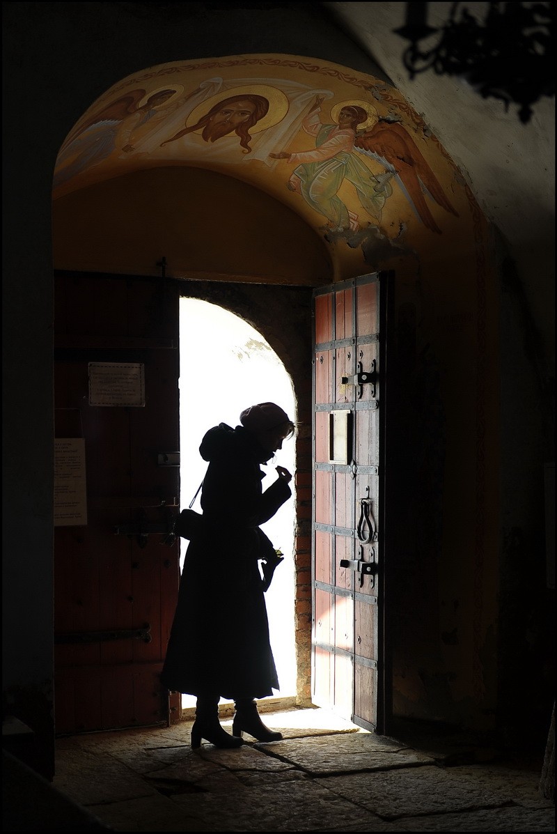 Потом самоубийцу хоронят, и в храме появляется новая прихожанка, которая приходит на все службы, потому что молитва для нее — единственное средство не сойти с ума. Она не может, подобно мужу, уйти в запой, она уходит в молитву. Черная одежда — это теперь ее одежда на годы. Она часто исповедуется, винит себя во всем, что произошло с ее сыночком.