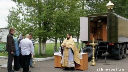 Передвижной храм был построен всего за два месяца. Как говорят в отделе исправительной работы с осужденными, это объясняется большой заинтересованностью заключенных. На освящении храма, которое совершил иерей Александр Косов, присутствовали будущие прихожане.