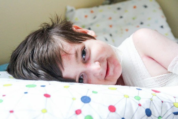 Первые пару недель дома при перевязках ему как будто действительно не было больно. Я думала, что, может, у таких детей отсутствуют нервные окончания в коже. Он же еще воспитанный. Всегда говорит «спасибо», «пожалуйста», здоровается. А тут еще и не плачет. Просто идеальный ребенок.