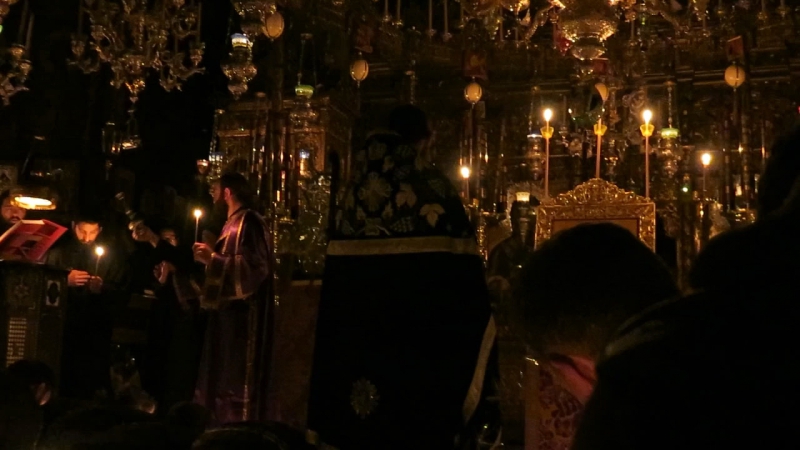Се Жених грядет в полунощи, / и блажен раб, егоже обрящет бдяща: / недостоин же паки, егоже обрящет унывающа. / блюди убо душе моя, / не сном отяготися, / да не смерти предана будеши, / и Царствия вне затворишися, / но воспряни зовущи: / Свят, Свят, Свят еси Боже, / Богородицею помилуй нас.