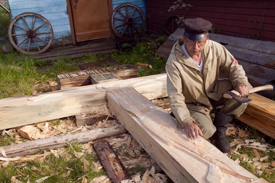 P. S. Пока готовился материал, и день города Белозерска прошел (Михаил был нарасхват — на долбленках-чунках детей катал, мастер-класс по резьбе устраивал, на вопросы губернатора отвечал) и крест в Елино установили и освятили.