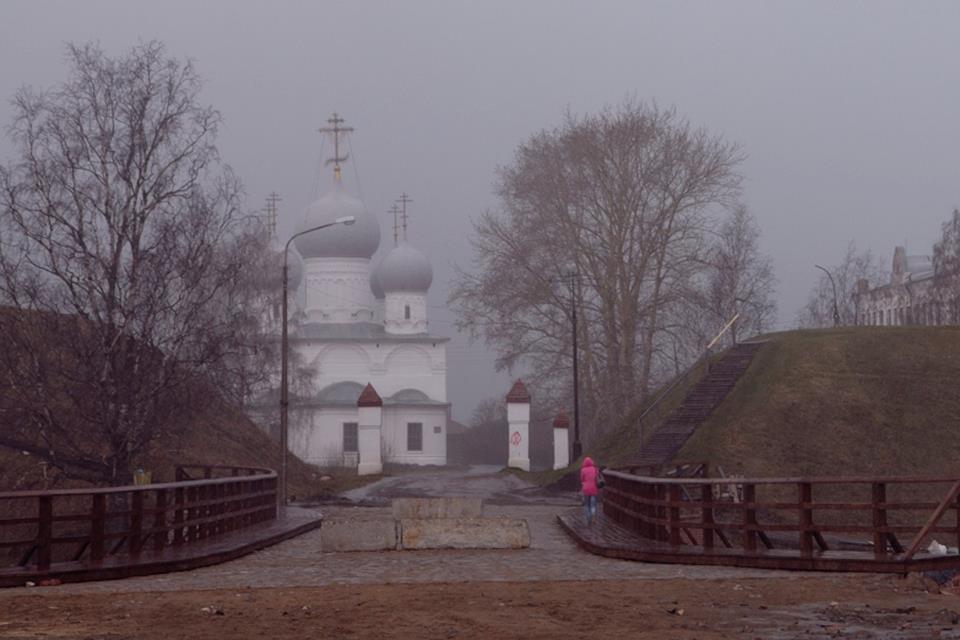 О Белозерске я сохранила летние воспоминания 2003-го года. Знойная июльская лень, густая трава на высоченных валах, туристы с сувенирами, абсолютно плоское зеркальное Белое озеро, улица Шукшина, храмы. Я и сама была самым обычным туристом — как и во все мои тогдашние еще бессознательные почти поездки по Русскому северу.