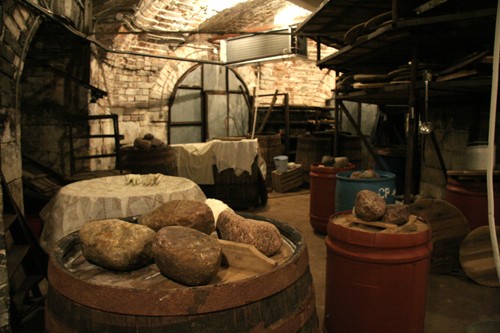 Засолочная находится в подвале одной из башен монастырской стены – здесь круглый год холодно. Солят все в дубовых бочках. Бочки начинают готовить к засолке уже в начале лета – сначала обрабатывают сухой горчицей, потом кладут в них можжевельник и запаривают. Просушивают наверху, на солнце, поднимая бочки специальным подъемником.
