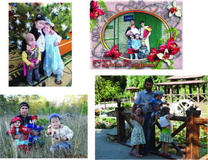 Трое старших деток ходят в детский сад. Каждое воскресенье стараемся все вместе ездить в Свято-Никольский Храм в слободе Кашары, очень нравится бывать в гостях у настоятеля монастыря в селе Верхне-Макеевка Кашарского района. Зимой всей семьей любим ходить на речку кататься на коньках.