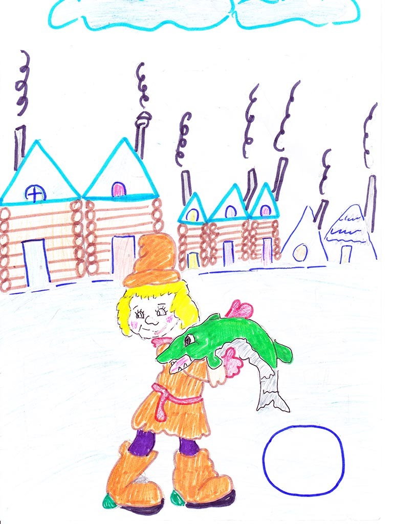 «Моему сыночку – Саше Башлыкову 6 лет. Он не может заснуть без сказки на ночь. Раньше читала мама, теперь он учится читать сам. Любит сказки А.С. Пушкина. Узнав о конкурсе сразу решил нарисовать золотую рыбку из Сказки о рыбаке и рыбке».