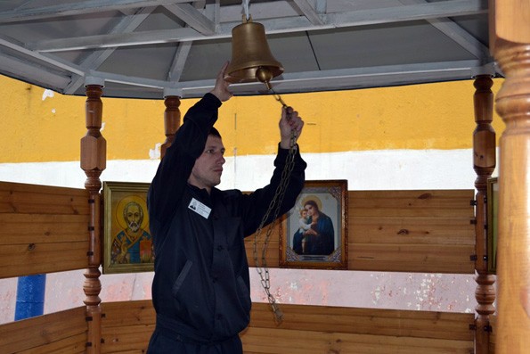 Во дворе церкви звонница. Звонят в колокола сами осужденные. Они же следят за чистотой и в меру сил обеспечивают красоту внутреннего убранства.
