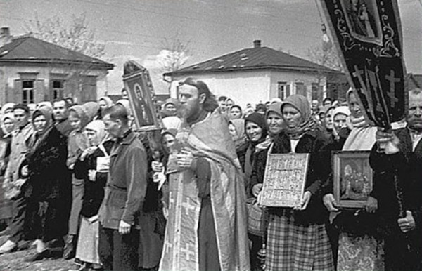 Я в деревне познакомился с одной старушечкой, Надеждой Фёдоровной, такая сухонькая-сухонькая. Всю жизнь одна прожила, потому что из деревни ушло человек 30, а вернулось трое. Вот, говорит, в войну мужиков нет, лошадей нет, все забрали. Вот мы, бабоньки, впрягались в плуг — пахать надо, сеять надо. Кто-то толкает, кто-то, напрягаясь, этот плуг тянет. Вот так пахали на себе русские женщины. Это вклад. Танки делали женщины и дети — они что, неверующие были? Это вклад. Также и самолеты. Практически весь народ был верующим.