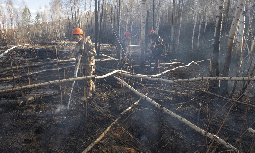 Тушение торфяного пожара в Свердловской области, май 2022 г. Фото: Мария Васильева / Гринпис