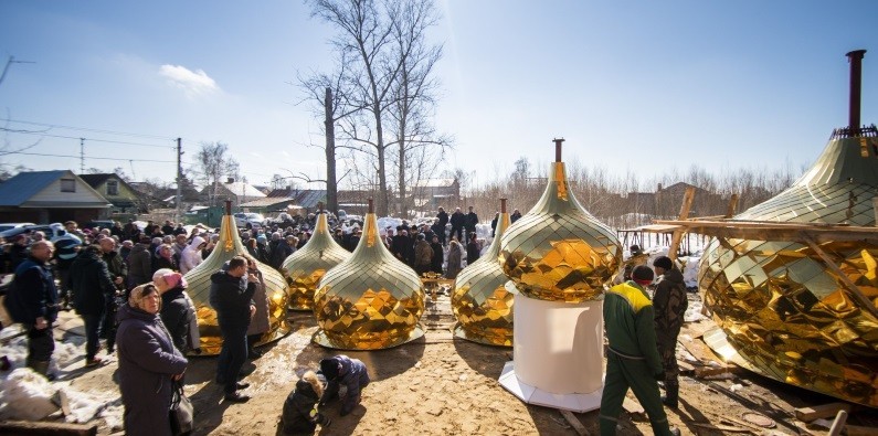 Под Казанью освятили купола для храма, который строит на свои деньги 81-летняя пенсионерка