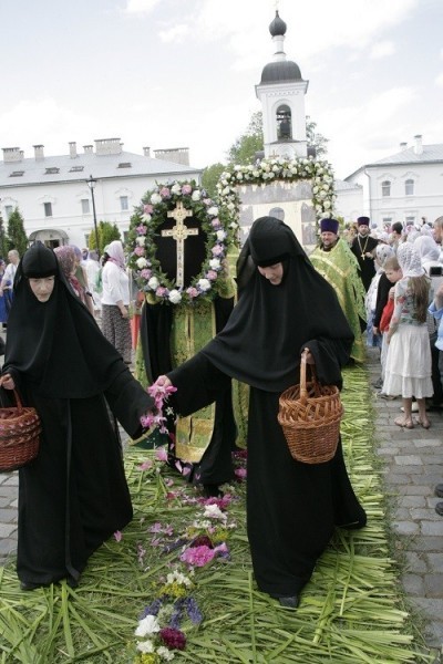 Поскольку монастырь древний и в нем находится великая святыня – мощи преподобной Евфросинии, – сюда приезжает много паломников и экскурсий. Некоторые послушания сестер связаны с этим служением обители. В приеме паломников сестрам помогают помощники-сотрудники, которые проводят экскурсии, работают в паломнической трапезной, церковных лавках. Тяжелые физические работы выполняют рабочие-мужчины.