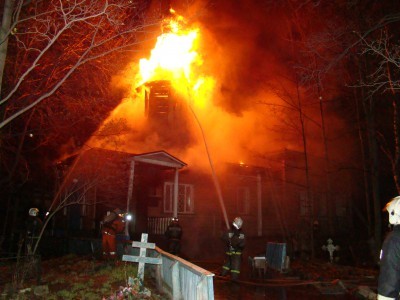 Напомним, возгорание произошло ночью 13 мая прошлого года. К моменту приезда пожарной дружины случайные прохожие помогали служителям храма выносить из пожара иконы и утварь. Огонь, по словам пожарных, было потушить непросто, так как в центре пожара образовалась «тяга», и пламя пошло на крышу. Полностью потушить огонь удалось только к 5 часам утра.