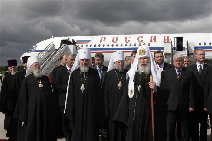 По мере того как самолет приближался к месту назначения, наши ребята — фотографы и операторы — начинали собираться и готовиться к работе. У них была задача: выскочить из самолета перед Патриархом, чтобы отснять его выход, спуск по трапу и встречу с местным архиереем и светскими начальниками.