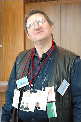 Саша Бригадов, увешанный нашими пропусками. Правда, это не поездка, это Рождественские чтения, кажется, 2007-го года.