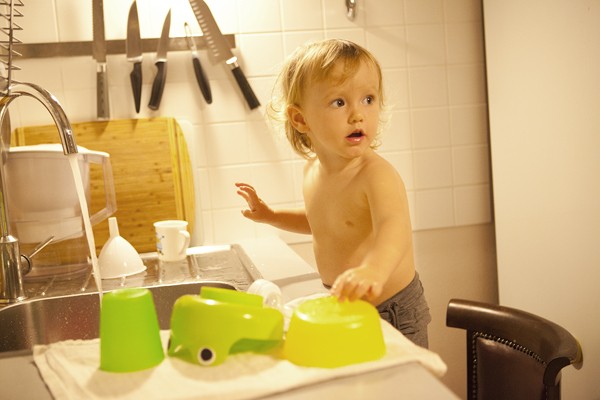 И действительно моет посуду. Это немножко неудобно, потому что посуда по утрам у нас чистая, так что приходится позволить Наде перевозюкать мыльной губкой довольно много тарелок, ложек и чашек, которые придется потом еще раз вымыть.