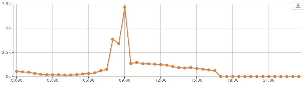 Чаще о Благовещении писали женщины: им принадлежит 73% всех опубликованных записей. Общий пик упоминаний Благовещения приходится на 9 утра 7 апреля — 7 141 публикация. На графике приведена динамика числа публикаций с 00:00 до 17:00 7-го апреля: