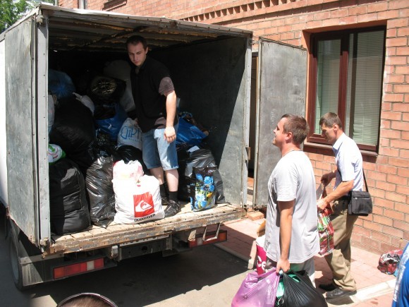 Принесли столько вещей, что кабинета не хватало, пришлось открыть большой зал в административном здании и сортировать вещи там