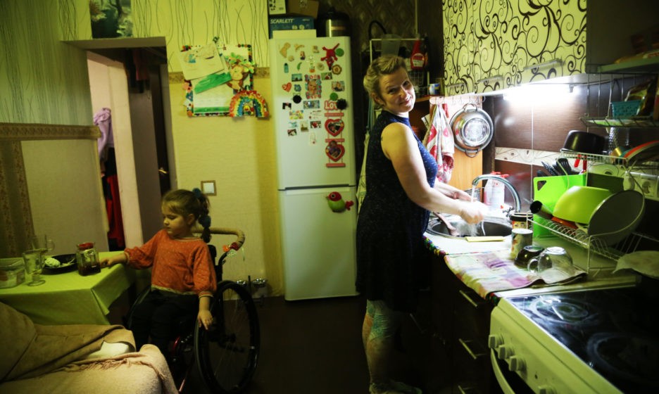 Мы живем на съемной квартире. У нас нет своей. Мы хотим свое гнездо, где можно оборудовать туалет, ванну, мойку. Чтобы мне было легче со всем этим справляться, потому что Маша сейчас уже довольно тяжелая. Хочется, чтобы дочь сама могла подъехать к раковине вымыть руки, например, или помыть себе яблоко.