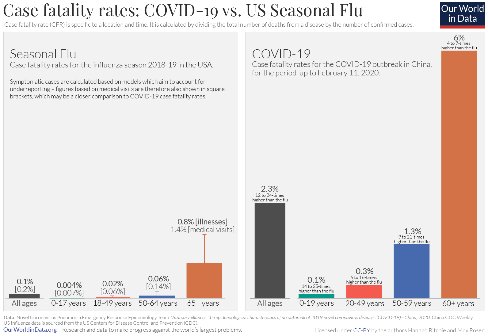 — Нынешний вид коронавируса не сильно далеко ушел от своих собратьев: он не очень контагиозен и летальность от него не высока (напомним, летальность нового коронавируса составляет примерно 1% — это существенно выше, чем у сезонного гриппа (0,1%), но ниже, чем у родственной инфекции SARS — атипичная пневмония (9%). Контагиозность (заразность) у нового вируса выше, чем у гриппа и предшественников — в среднем один инфицированный может заражать 2–3 человек, а при очень тесном контакте зараженными могут оказаться до 35% человек. — Прим. ред.).