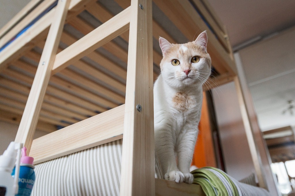 – В первые дни кот у нас вообще начал сигать по шкафам, — рассказывает Лариса. – А потом папа придумал ему под потолком специальные полочки.