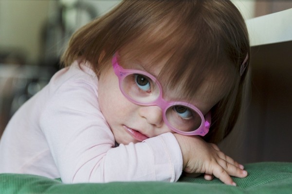 При осмотре у врача выяснилось, что у Иришки всё-таки +4 (зрение – тоже частая проблема даунят), поэтому второй день она щеголяет в специальных детских очках с гибкими дужками. И, естественно, всё время пытается их снять и куда-нибудь засунуть.