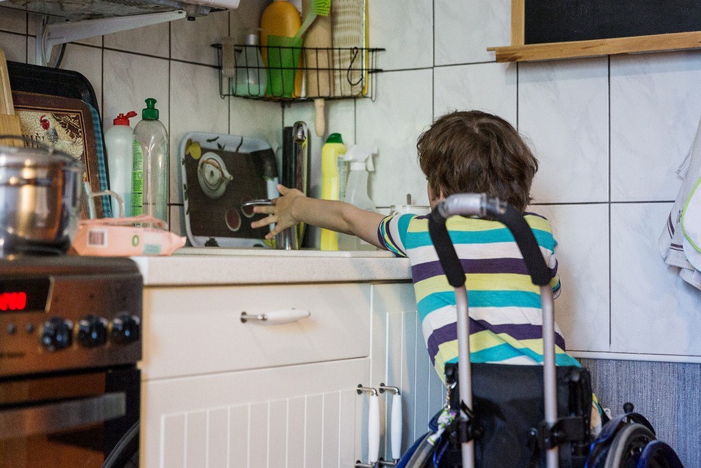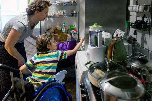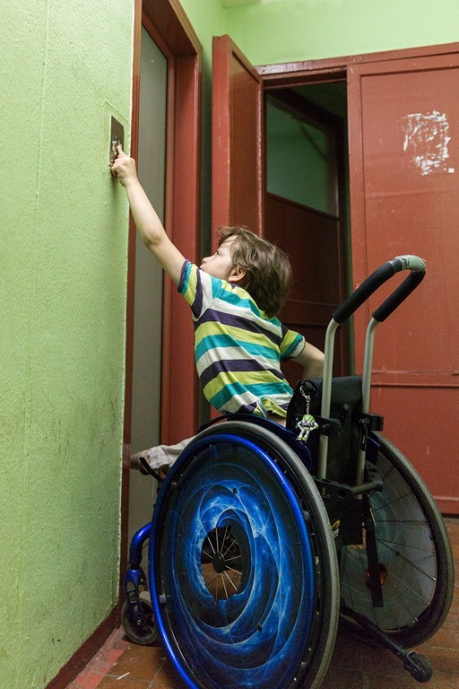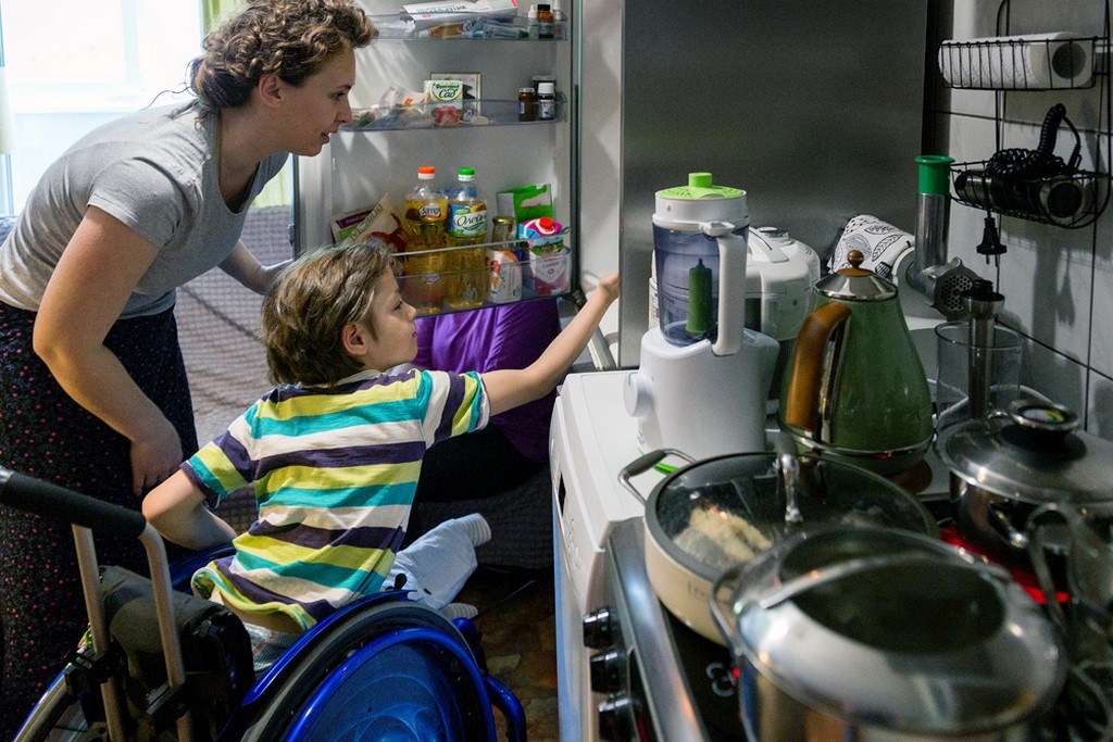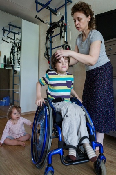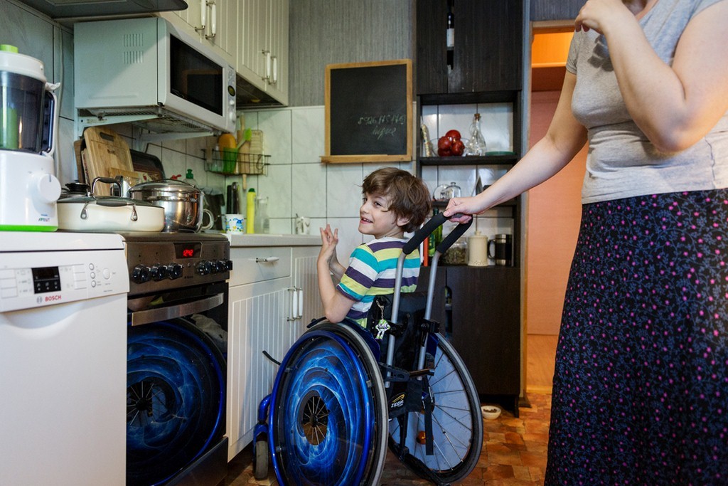 – Харитошку мы взяли, когда ему было пять, — рассказывает Лариса. – У него – врождённые проблемы с позвоночником, парализована нижняя часть тела. Так что по жизни он будет передвигаться на коляске, ну, и ещё – катетеры раз в два часа.