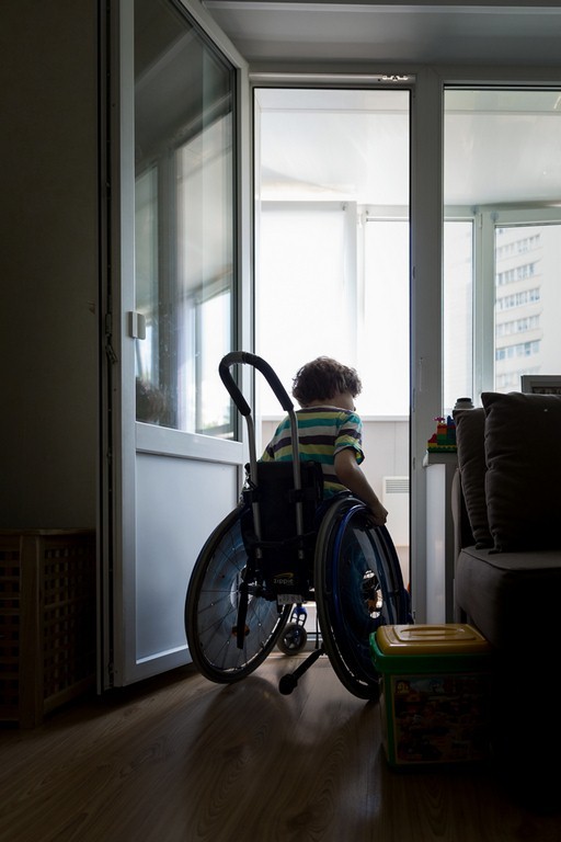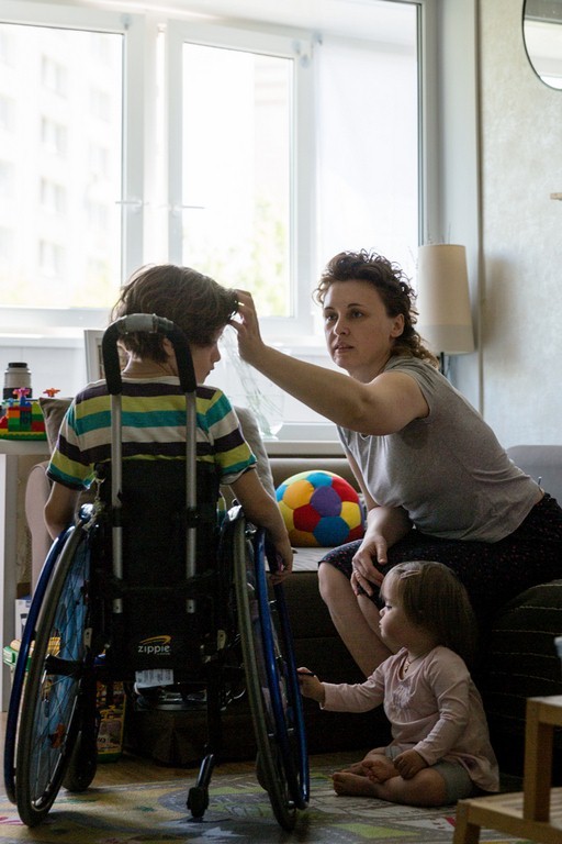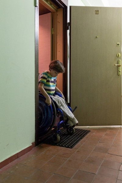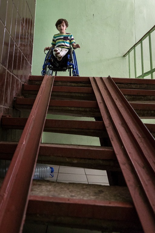 Из квартиры – такова российская реальность – тоже просто так не выйдешь: третий этаж, лифт, а дальше – стоп! Лестница, спустить коляску по которой может только папа.