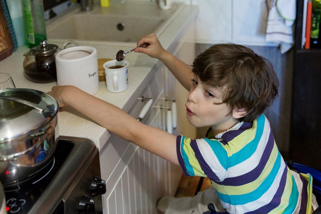 и кто-то успел включить конфорку под кастрюлей с кашей. («Ну, всё, кнопочки, уже дотягивается»). Кашу благополучно спасли.