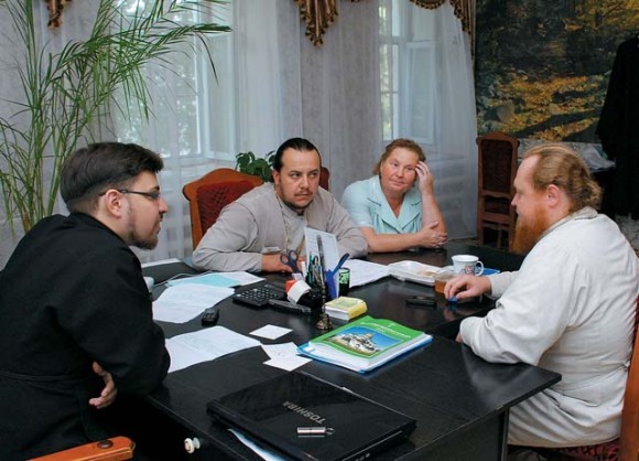 Совещание у ректора, священника Дионисия Красноперова, с участием благочинного, протоиерея Игоря Покровского. Главная тема — что делать дальше. Основной вал нуждающихся спадает, но впереди еще зима.